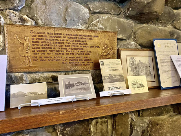 The Rushmore Memorial Library is remarkably original from the time when it was opened in 1924. Complete with even some of its original books, among its most unique artifacts is this bronze plaque dedicated by Charles Rushmore ’s daughter, Jean Rushmore Patterson, which is imbedded into the fireplace mantle. OUR COLLECTION